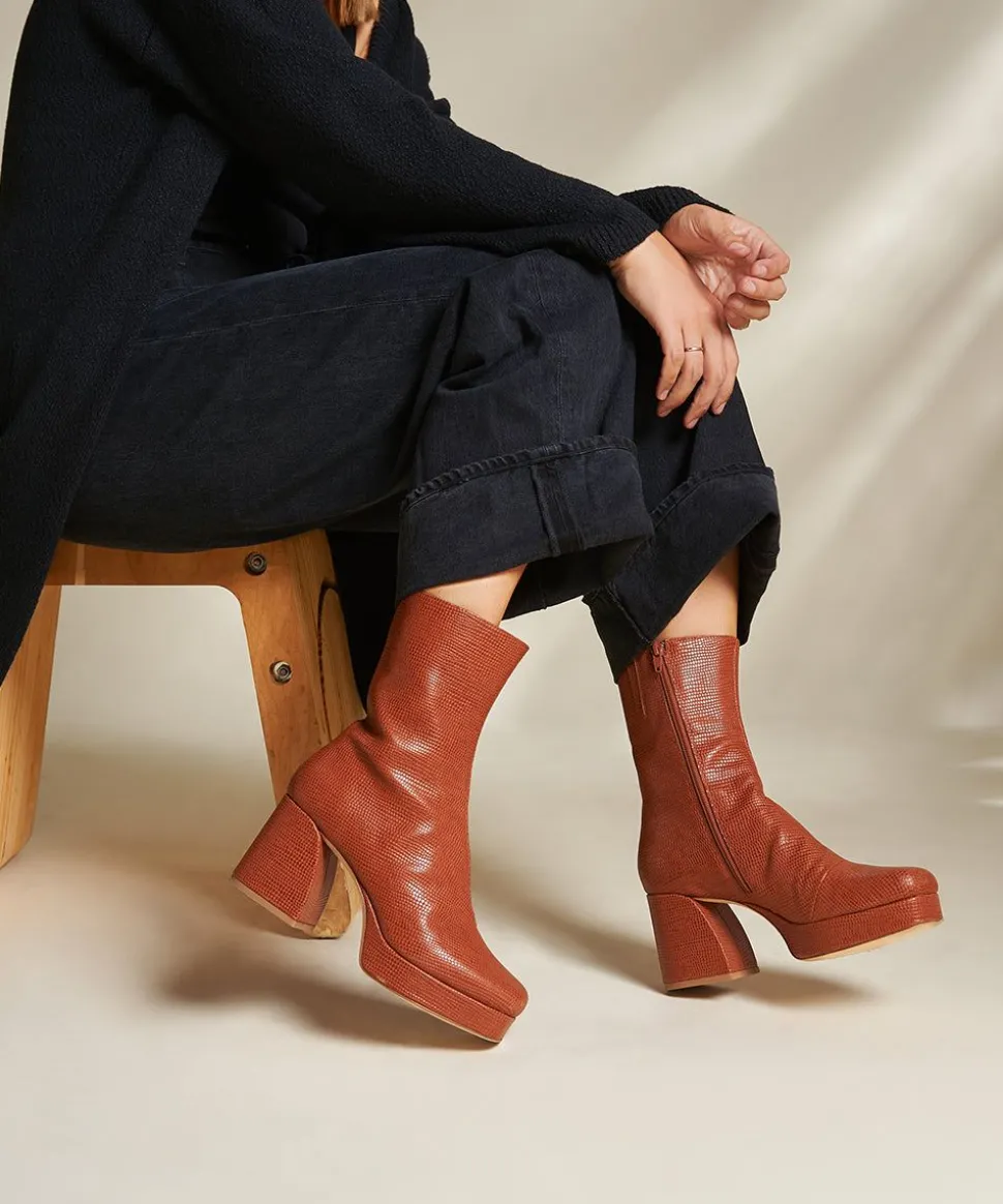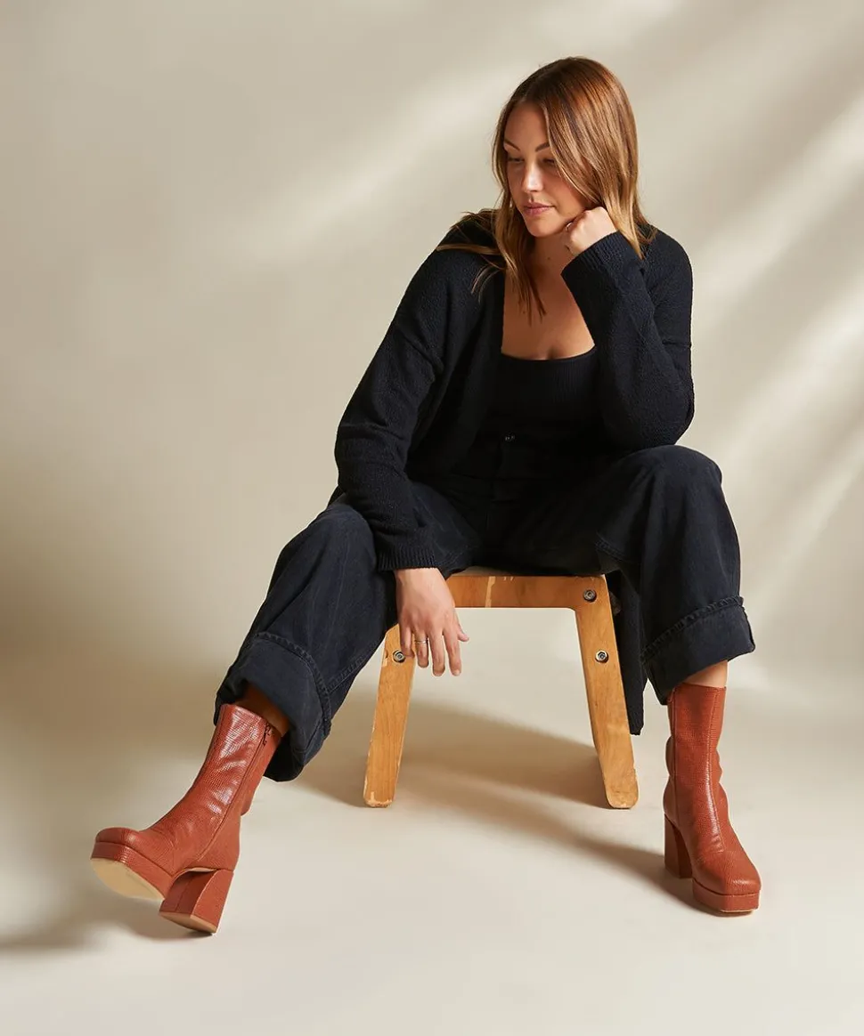 An All-New And Totally Sexy Everyday Boot. Soft Square Toe, Supple Leather, Sculptural 3″ Heel And Walkable Height With A 1″ Overall Platform. Versatile, Casual, And Elevated. Sounds Like You And Maeve Have That In Common